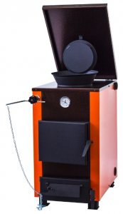 6. Технологичность. За счет внедрения водяного колосника достигнута максимальная теплоотдача носителю и увеличена скорость передачи тепла в систему. Также котел доработан и имеет автоматический регулятор тяги, который позволяет в автоматическом режиме поддерживать комфортную температуру теплоносителя. Данный котел подходит для закрытой системы отопления. В него добавлена дополнительная дверца в топочной камере, позволяющая сократить до минимума потери тепла.